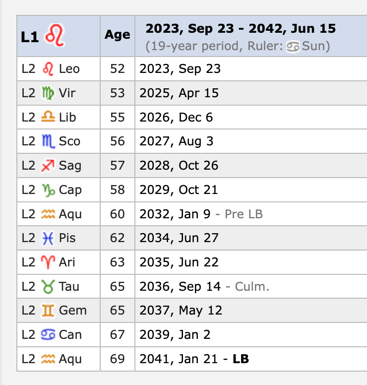 馬斯克目前處於 獅子座 ♌︎ 的運程,為期將近 1.5 年。(從 2023/09/23 到 2025/04/15)